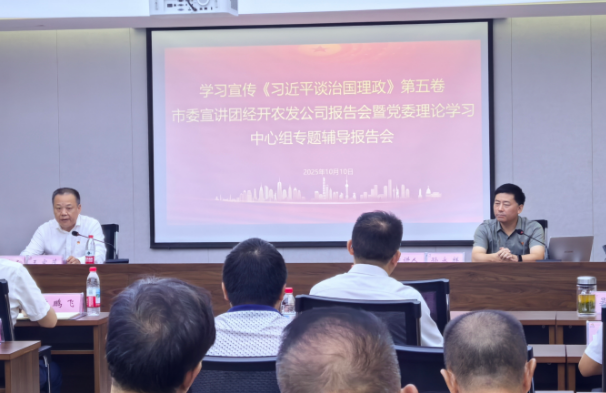 10月10日,学习宣传《习近平谈治国理政》第五卷市委宣讲团经开农发公司报告会暨党委理论学习中心组专题辅导报告会举行。市委宣讲团成员,华中师范大学